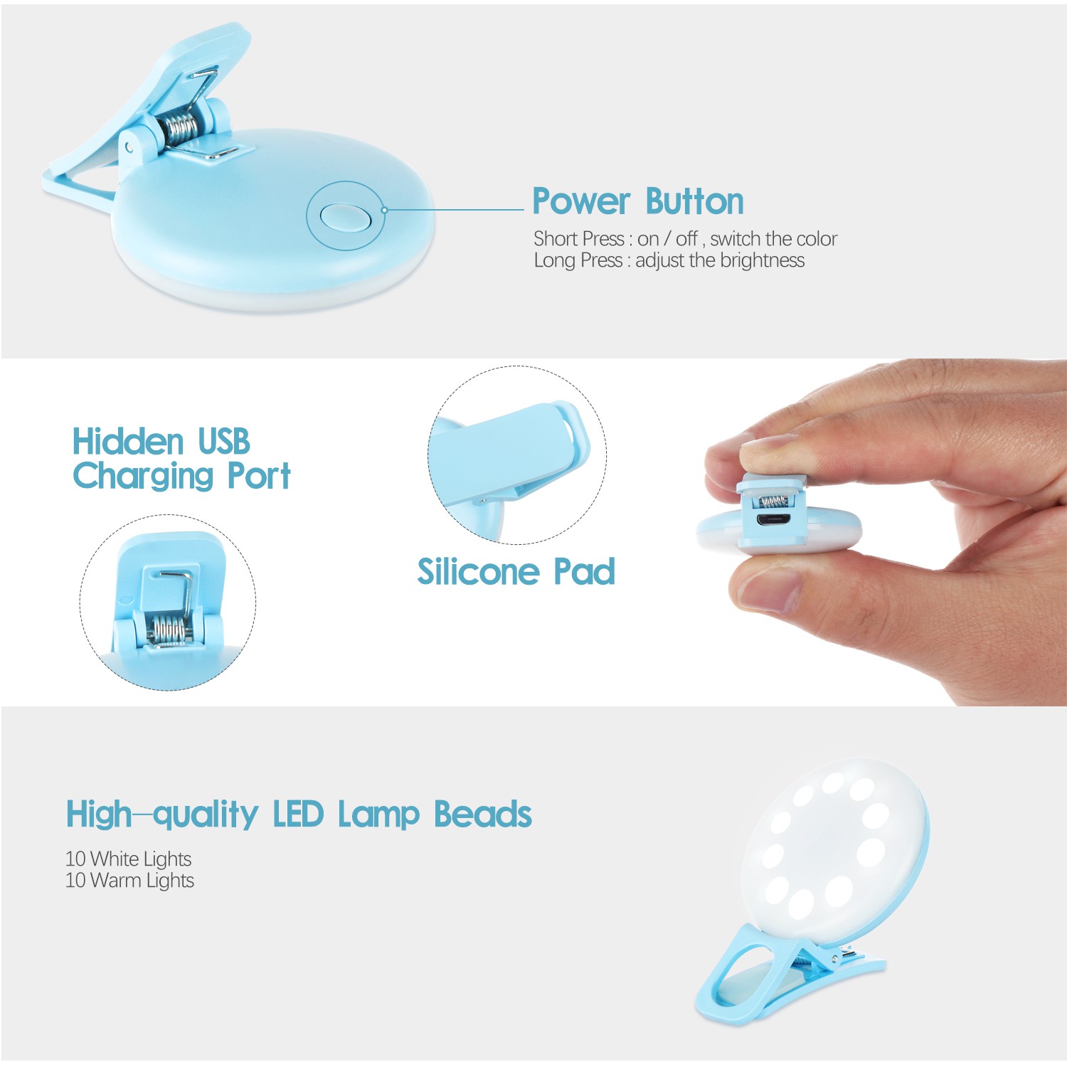Use it at any time: You can clip the fill light on the top or side of your phone, clip it on the phone, turn on the back switch.Then enjoy your selfie time.