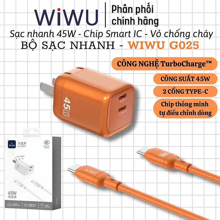 ️ Bộ Sạc Nhanh WiWU 45W TurboCharge – Combo Củ & Dây Siêu Tốc Phiên Bản CAM LIMITED