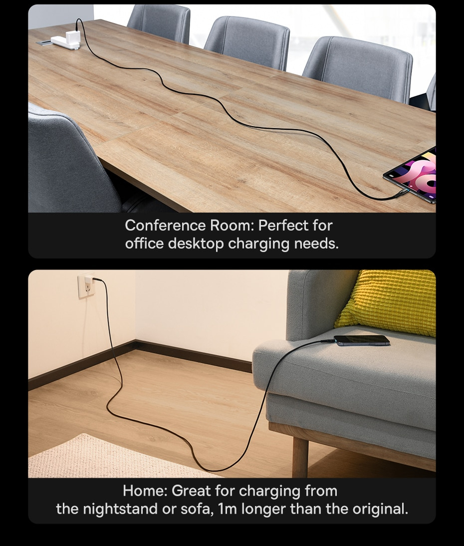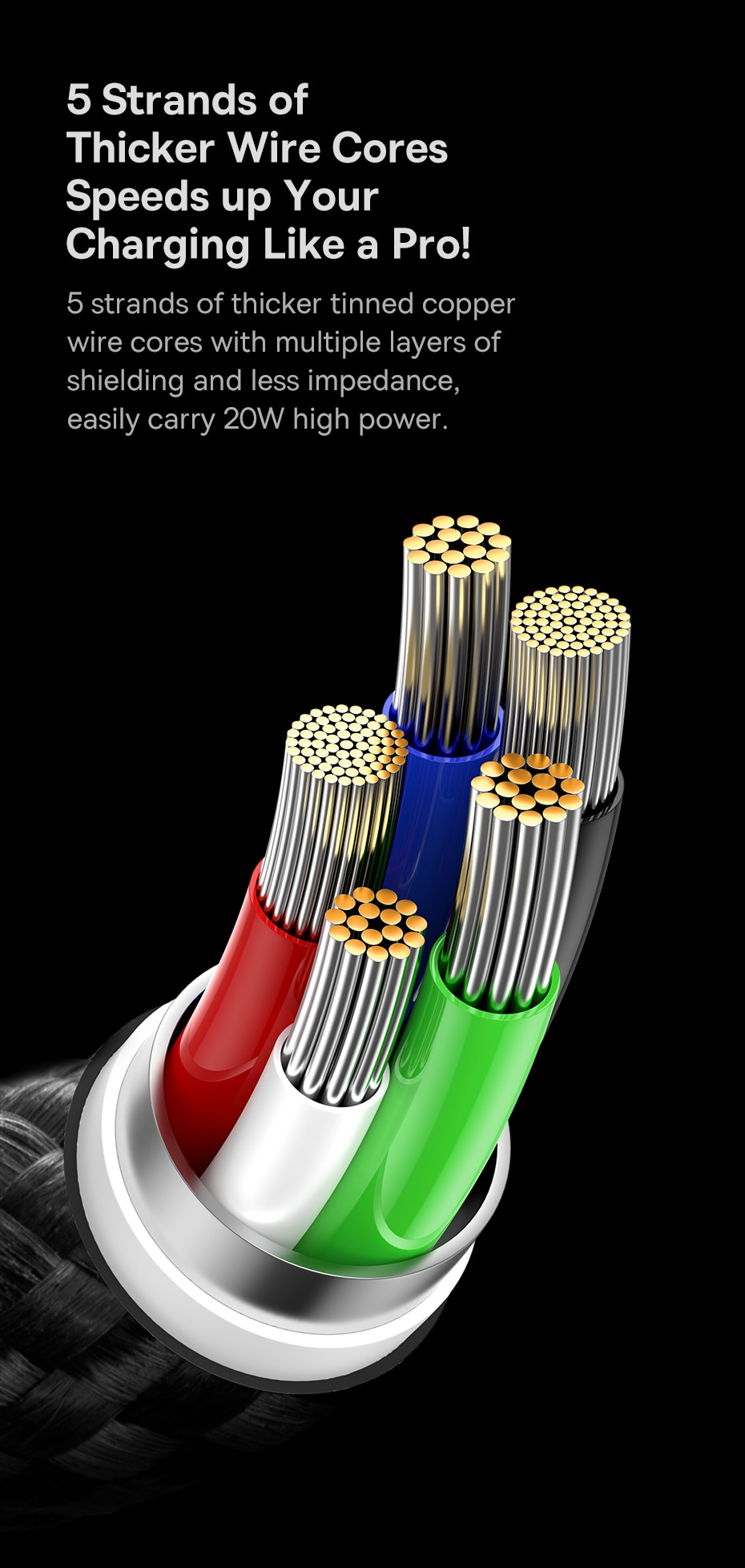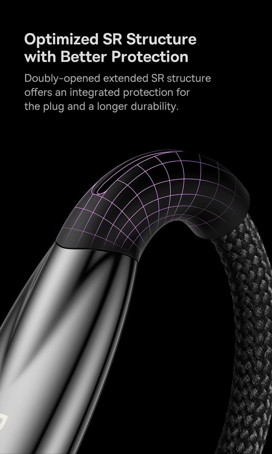 Dây cáp được bao bọc bởi chất liệu Nylon cao cấp , khớp nối bằng hợp kim kẽm chống hiện tượng gãy đầu cáp, chống oxy hóa, chống mài mòn, không bị quá nhiệt, bền và an toàn.