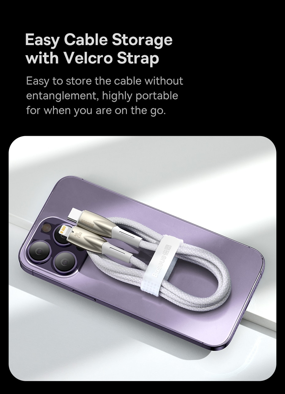 Baseus Glimmer Series là dòng cáp sạc vải dù siêu bền nổi tiếng của Baseus. Chuyên dụng cho dòng iPhone 14 mới nhất hiện nay, sản phẩm luôn được săn đón bởi sở hữu thiết kế trẻ trung, chất liệu cao cấp, màu sắc trẻ trung hiện đại. Ngoài ra sản phẩm còn hỗ trợ sạc nhanh với công suất lên đến 20W mà vẫn đảm bảo an toàn cho thiết bị của bạn.