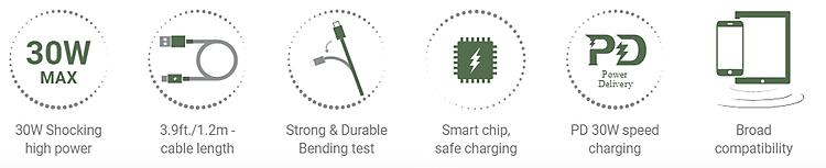 - Hỗ trợ tối đa sạc nhanh PD 30W, tương thích với điện thoại di động i.Phone 12 sạc PD 20W.