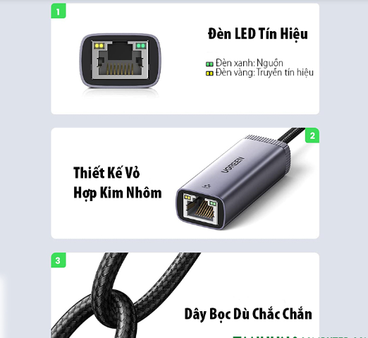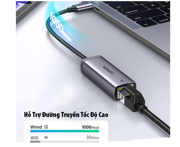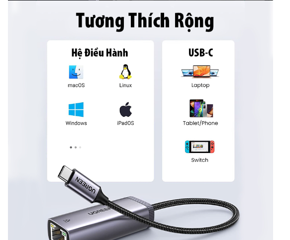 Cáp chuyển USB Type C sang LAN 1000Mbps Ugreen 40322 có thiết kế vô cùng nhỏ gọn, màu sắc đen sang trọng có thể phù hợp với mọi không gian, đây sẽ là sự lựa chọn tuyệt vời cho bộ sưu tập phụ kiện chính hãng cao cấp của bạn.