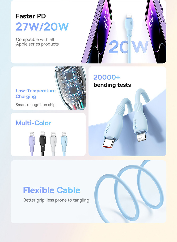 Tính năng Cáp sạc nhanh Type C to Ln PD 20W Baseus Pudding Series (Fast Charging Data Cable)