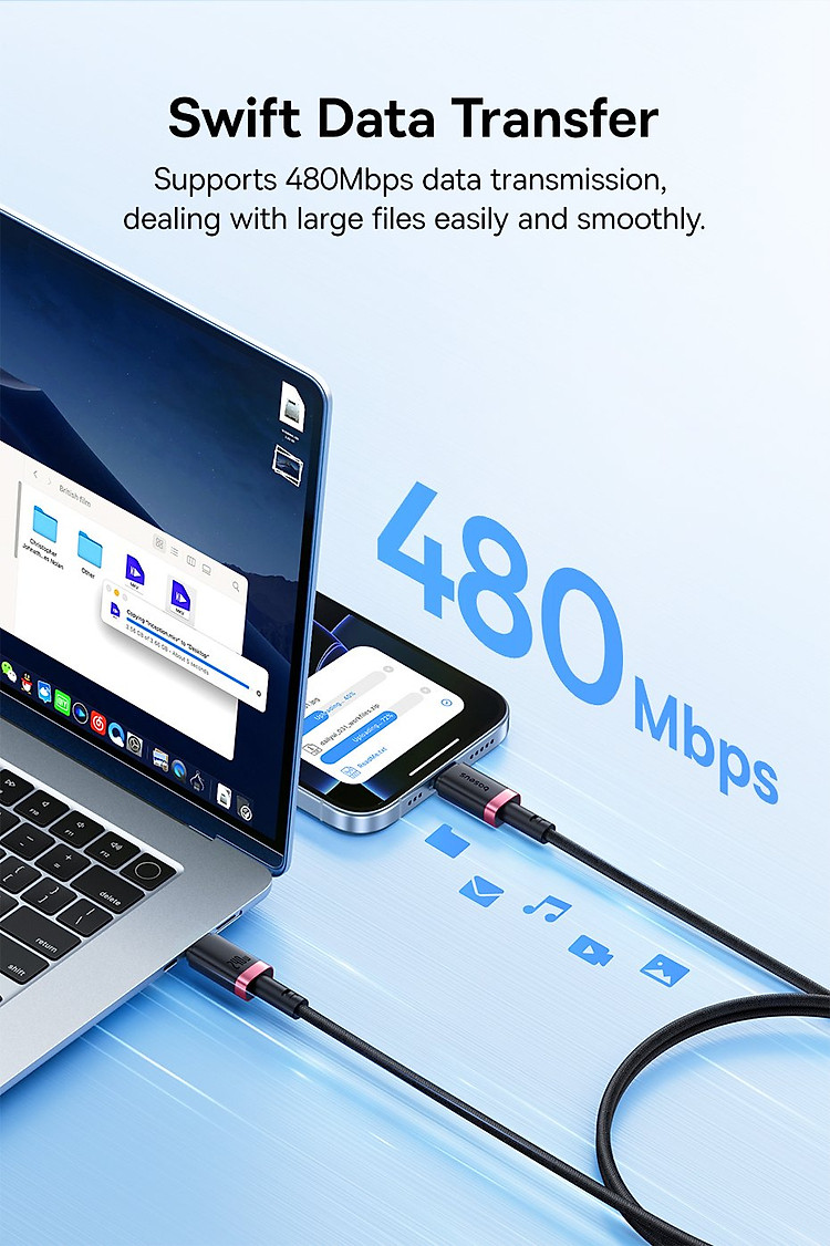 Không chỉ là một chiếc cáp sạc, Baseus DURA Series còn là công cụ truyền tải dữ liệu hiệu quả với tốc độ lên đến 480Mbps, giúp bạn sao chép hình ảnh, video và các tệp tin lớn chỉ trong nháy mắt.