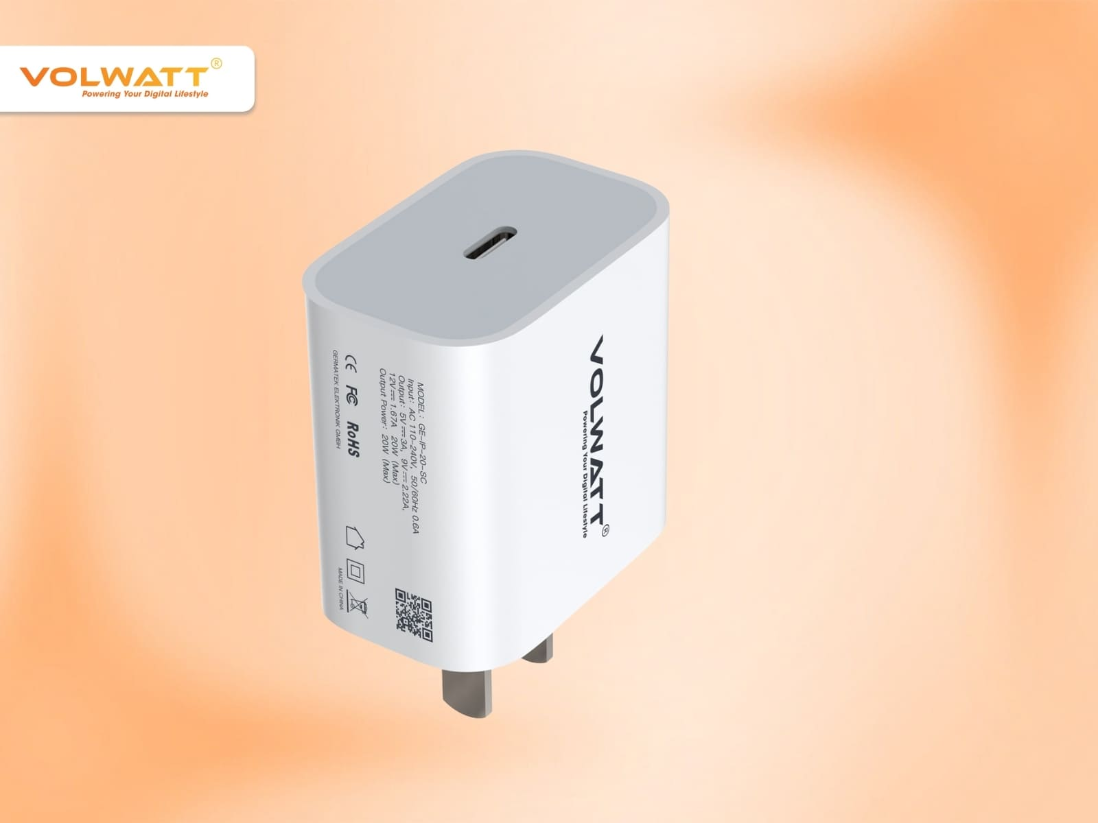 Tên sản phẩm: Củ sạc nhanh Volwatt GE-IP-20-SC Fast Charger