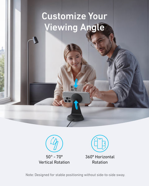 Dễ dàng điều chỉnh góc nhìn từ 50° đến 70° theo chiều dọc và xoay 360° theo chiều ngang để tìm vị trí xem hoàn hảo trong khi sạc.