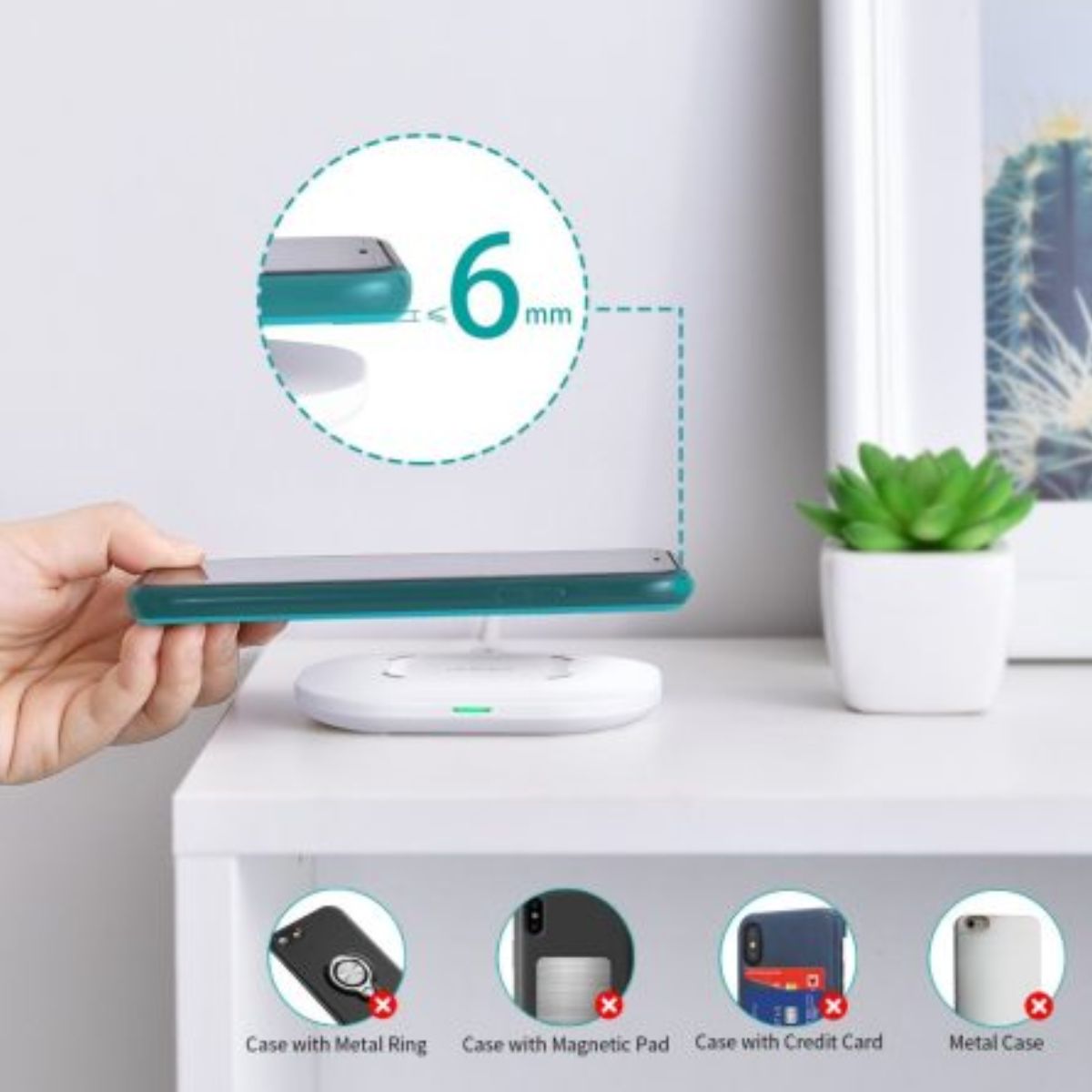 – Đế sạc không dây Choetech T550 rất nhỏ gọn, vì vậy nó sẽ không chiếm nhiều không gian trên bàn làm việc của bạn. Bạn có thể đặt đế sạc này ở bất cứ nơi đâu bạn muốn. Thiết kế mỏng, kiểu dáng chữ nhật và màu sắc hiện đại (màu trắng và màu đen) sẽ đảm bảo sản phẩm phù hợp để xuất hiện trong mọi không gian, cho phép bạn sạc điện thoại hoặc tai nghe không dây ở mọi nơi.