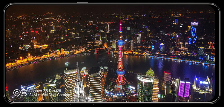Với việc "giấu" đi phần camera bằng cơ chế trượt thì phần mặt trước của Lenovo Z5 Pro giờ đây được dùng để hiển thị một cách tối đa. Smartphone này có màn hình kích thước 6.39 inch, công nghệ Super AMOLED của Samsung, định dạng 19,5: 9 và cung cấp tỷ lệ hiển thị so với cơ thể đạt mức 95,06% - cao nhất hiện nay. Chất lượng màn hình trên điện thoại là tốt với màu sắc đẹp mắt và hiển thị chính xác.