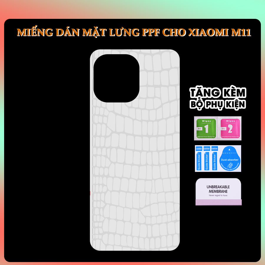 3. Miếng dán dẻo PPF mặt lưng cho Xiaomi Mi 11 họa tiết VÂN CÁ SẤU: tạo cảm giác sang trọng, cá tính với họa tiết vân cá sấu