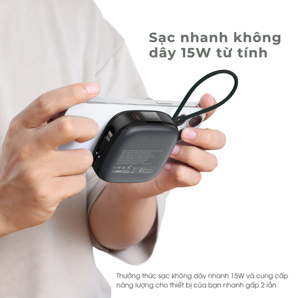 • Dung lượng 10.000mAh: Sạc cho iPhone 15 Pro của bạn lên tới 1,8 lần, với khả năng sạc tới 50% chỉ trong 30 phút.