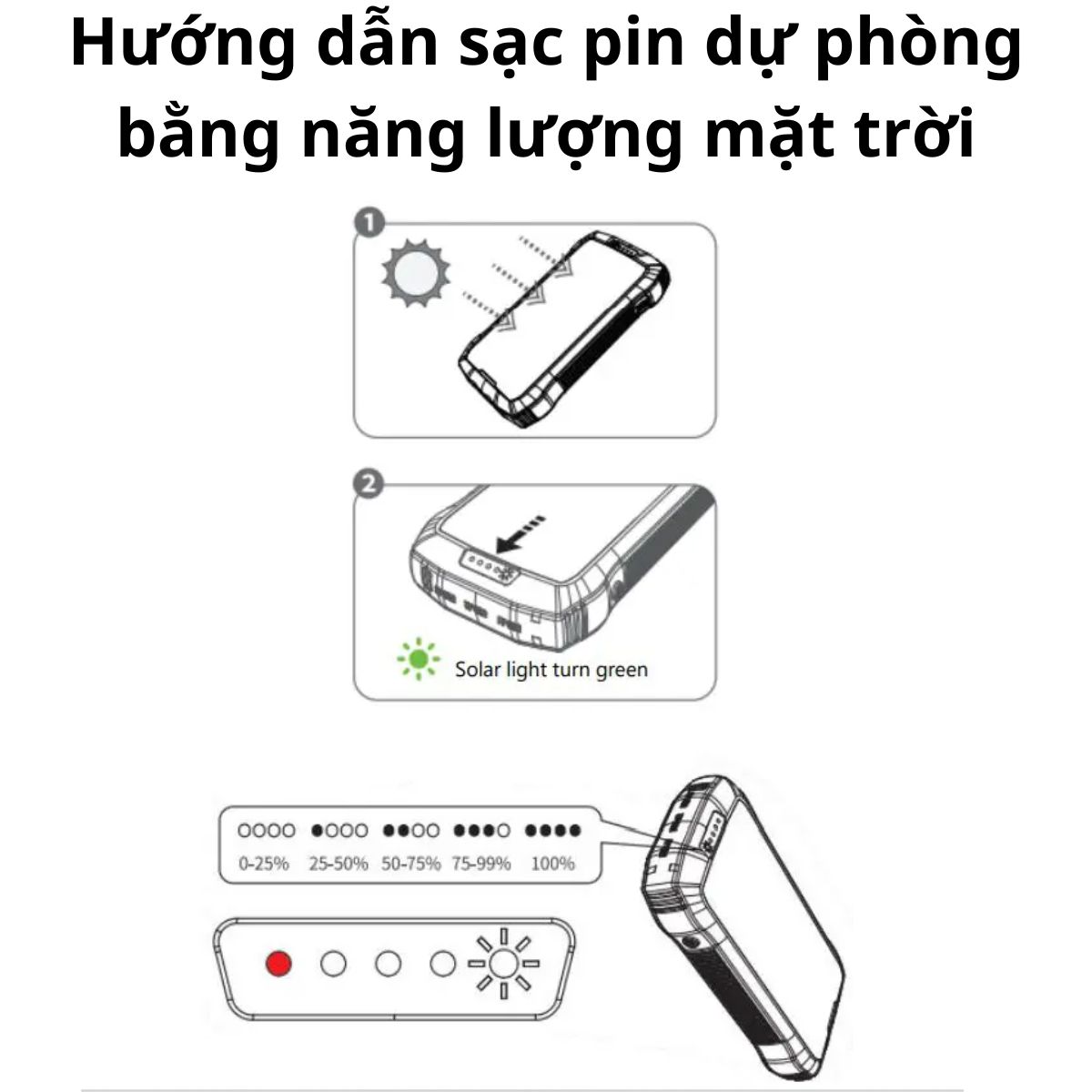 – Pin sạc năng lượng mặt trời được thiết kế có khả năng chống bụi, chống shock hay thậm chí chống nước nhẹ. Pin có 1 chỗ để móc treo rất phù hợp để mang theo khi đi du lịch, cùng với đó là việc tích hợp 1 đèn pin với cả hai chế độ đèn pin 180lm và 45 lm cũng như chế độ SOS để cung cấp cho bạn nhiều tùy chọn ánh sáng cho mọi tình huống. Thật sự là người bạn đồng hành lý tưởng cho những người đam mê dã ngoại. Pin có các vạch Đèn LED thông minh hiển thị lượng pin còn lại.