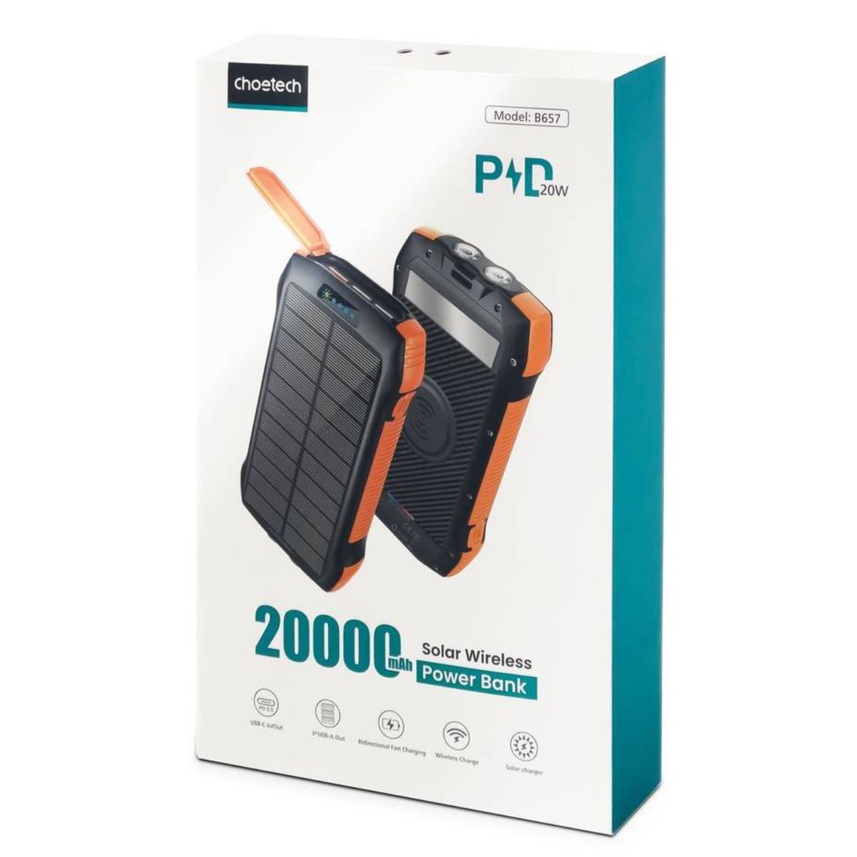 Pin Sạc Dự Phòng Choetech B657 Năng Lượng Mặt Trời Tích Hợp Sạc không Dây 20W dung lượng 20.000mAh (Hàng chính hãng)