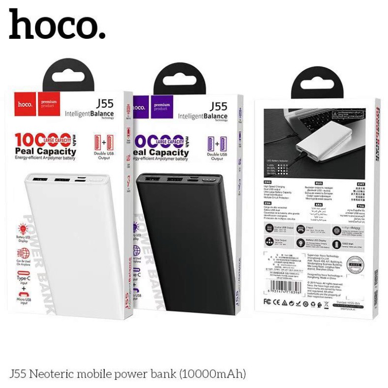 Điện Thoại & Phụ Kiện > Phụ kiện > Sạc dự phòng & Pin > Sạc dự phòng || Pin sạc dự phòng Hoco J55 Neoteric mobile 10000mAh lõi Li-Polymer