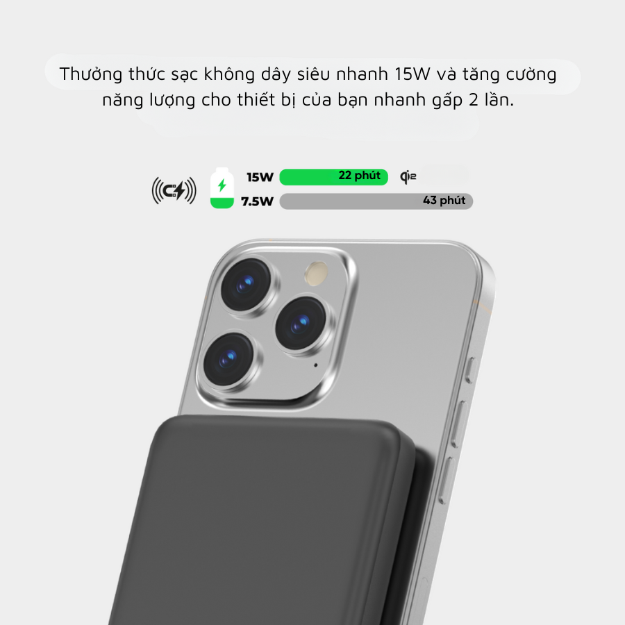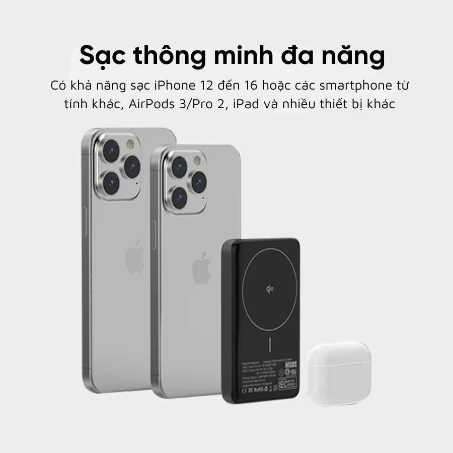 • Sạc không dây từ tính: Tương thích với Ma Safe. Gắn chắc chắn vào các thiết bị tương thích để sạc không dây rảnh tay dễ dàng.