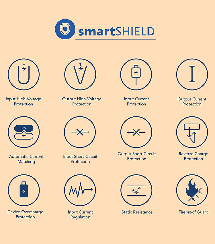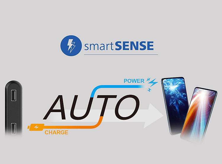 smartSENSE: an intuitive and universally-compatible charging technology that maximizes charging speed and auto-pairs with nearly any device.