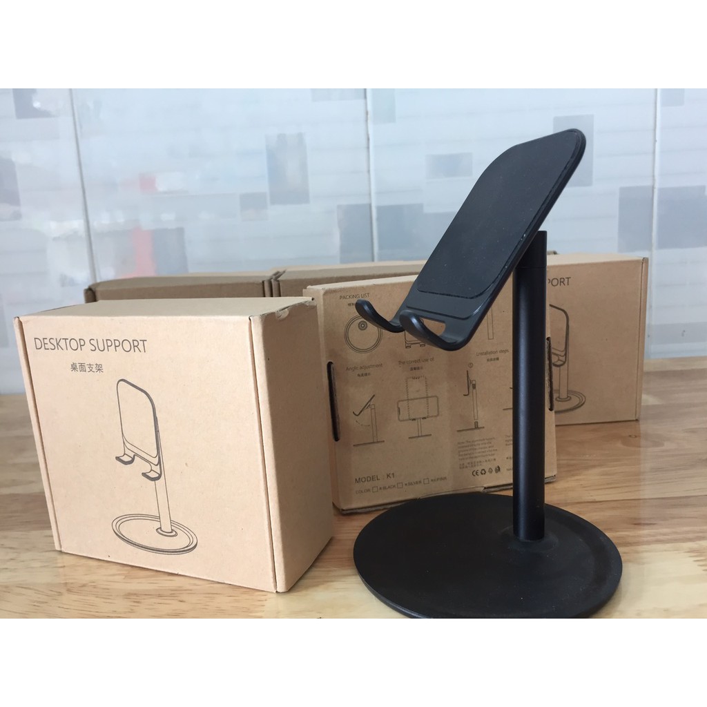Giá đỡ điện thoại K1 Desktop Support - chân đế chắc chắn - để được nhiều loại điện thoại kích thước lớn😍Giá Đỡ Điện Thoại/máy Tính Bảng K1👌 Kệ đỡ cho điện thoại, iPad K1 là phụ kiện lý tưởng giúp bạn rảnh tay khi sử dụng máy tính bảng hay smartphone. Kệ đỡ sáng tạo thiết kế tương thích với iPad và nhiều dòng smartphone với kích thước khác nhau. Sản phẩm có kích thước gọn nhẹ, cho phép bạn sử dụng thuận tiện. 👌 Kệ đỡ cho điện thoại, iPad K1 sử dụng kẹp đẩy chắc chắn, giúp giữ chắc thiết bị của bạn trên kệ đỡ, không lo rơi rớt. Hơn nữa, phần đầu kệ cho phép người dùng tùy chỉnh góc độ và độ cong dễ dàng.