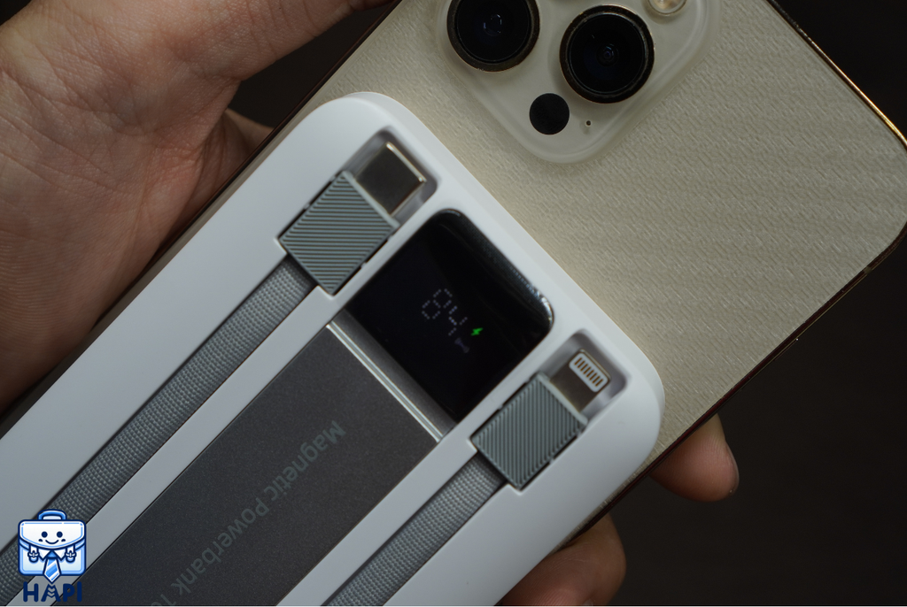 Có hỗ trợ sạc không dây cho các dòng từ 'iPhone' 12, có hiển thị % pin của sạc dự phòng kèm theo biểu tượng 'Magsafe' |