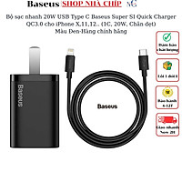 Bộ sạc nhanh 20W USB Type C Baseus Super SI Quick Charger QC3.0 cho iPhone 12 (1C, 20W, Chân dẹt) - Hàng chính hãng