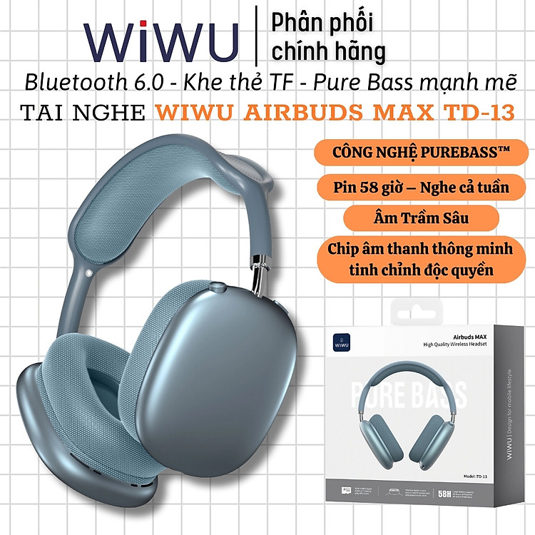 Tai Nghe Bluetooth WiWU Airbuds MAX TD-13 – Pin 58H | PureBass | Bluetooth 6.0 | TF Card